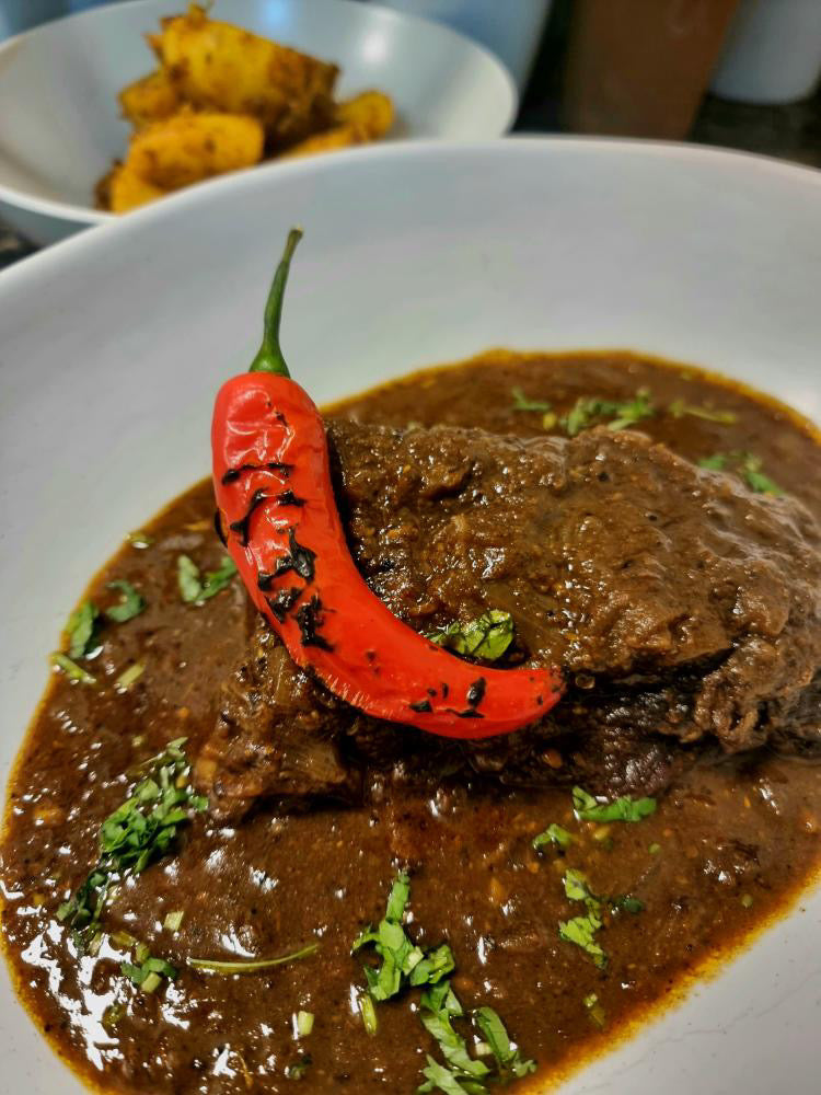 • Add the meat back to the gravy and serve with rice, roti, or potatoes.