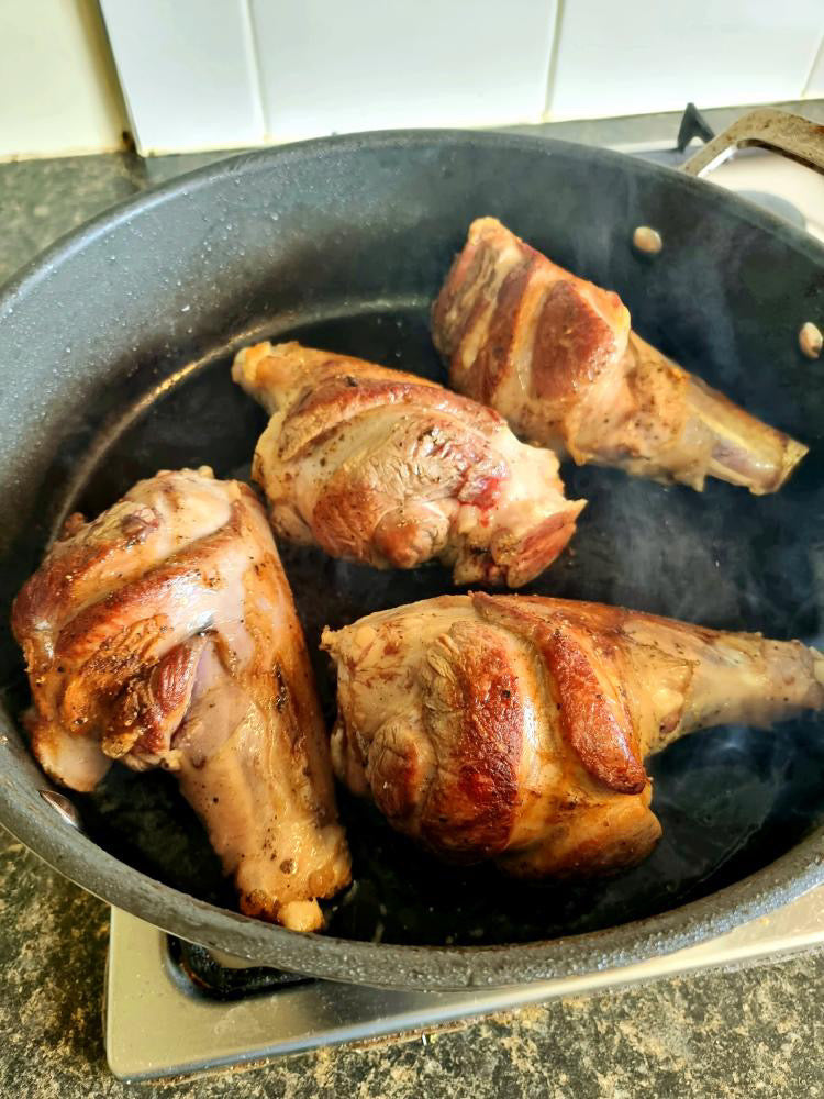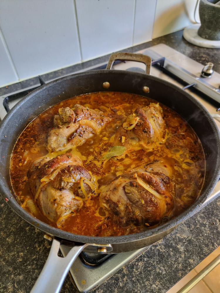 • Add the shanks back to the sauce and bring everything back to the boil.