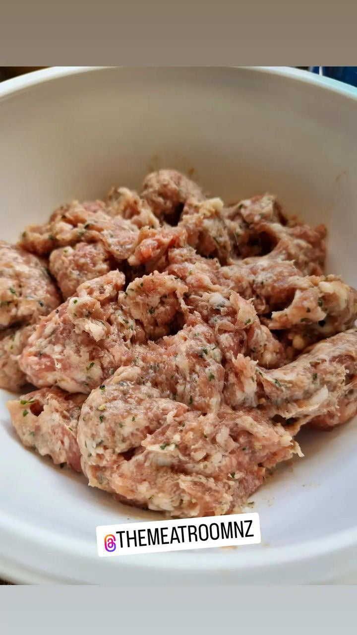 • Squeeze out all the sausage meat from the casings into a bowl and set aside.