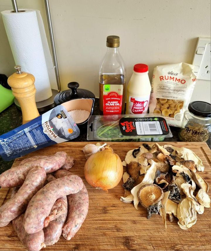 Need some midweek inspiration? Orecchiette in a creamy Toulouse sausage and wild mushrooms sauce.